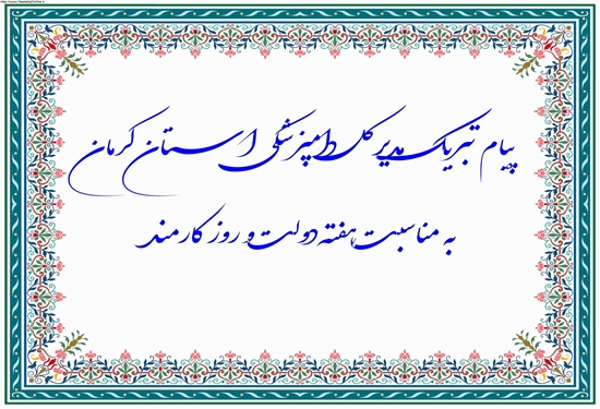 پیام تبریک مدیر کل دامپزشکی استان کرمان به مناسبت در پیش رو بودن هفته دولت و روز کارمند