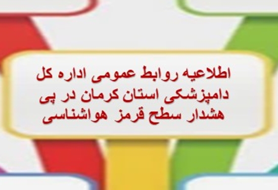 اطلاعیه روابط عمومی اداره کل دامپزشکی استان کرمان در پی هشدار سطح قرمز هواشناسی