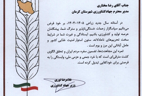 مدیر محترم جهاد کشاورزی شهرستان کرمان