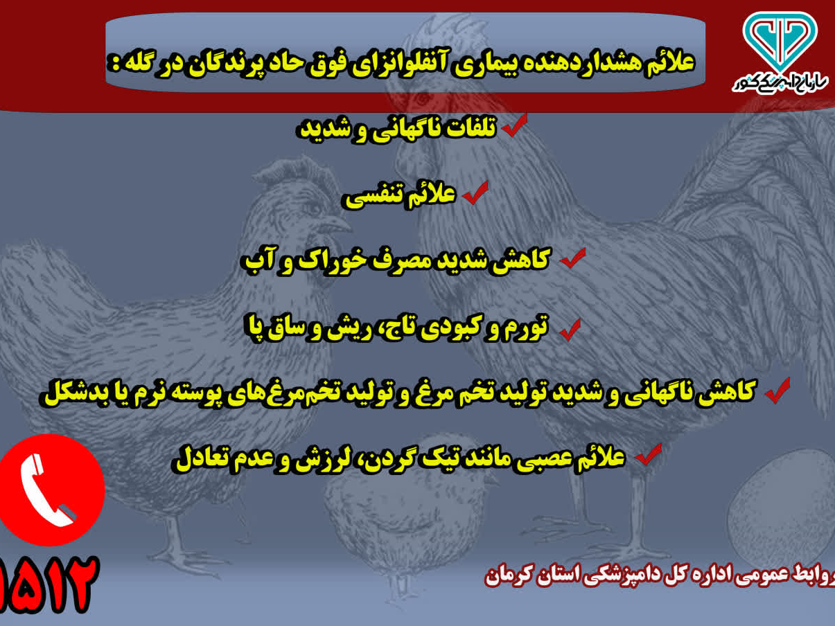 توصیه های بهداشتی روابط عمومی اداره کل دامپزشکی استان کرمان در خصوص بیماری آنفلوانزای فوق حاد پرندگان (1) 1404/09/18 - 13:14 - تعداد بازدید: 14 - کد خبر : 349148 - گروه خبری : گروه های مطالب,عکس - تعداد نظرات : 0