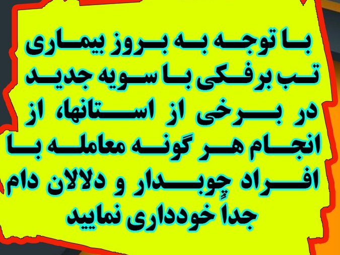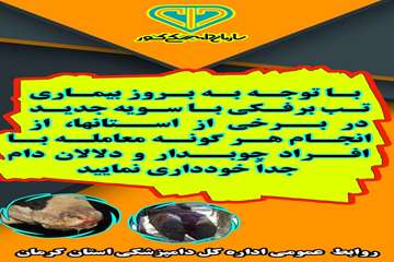 توصیه های بهداشتی روابط عمومی اداره کل دامپزشکی استان کرمان در خصوص بیماری تب برفکی 1404/08/11 - 13:45 - تعداد بازدید: 46 - کد خبر : 347510 - گروه خبری : گروه های مطالب,آموزش و ترویج - تعداد نظرات : 0