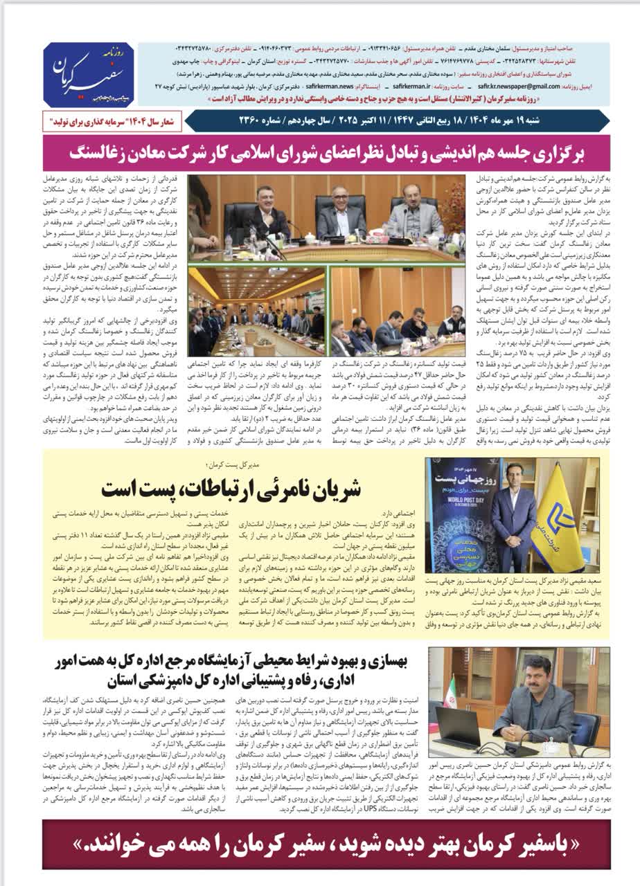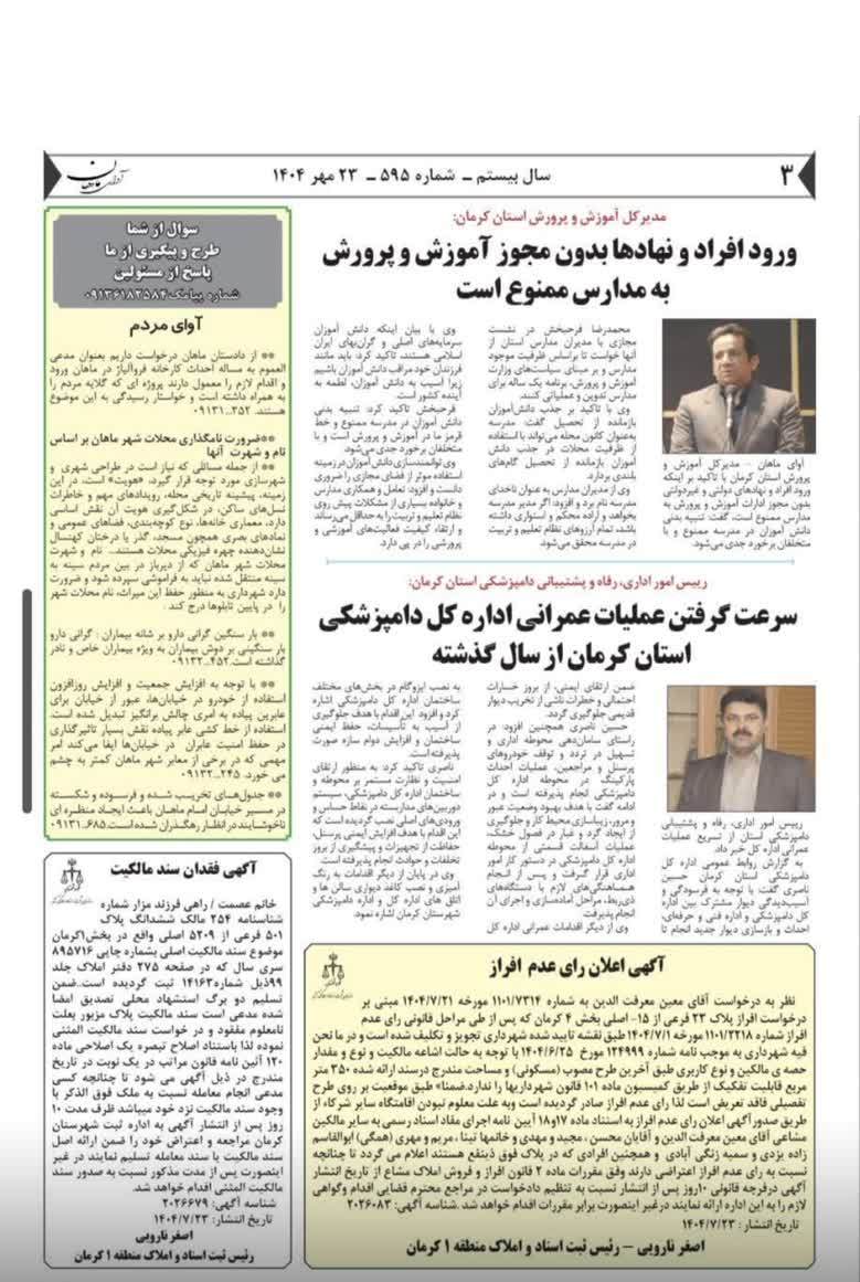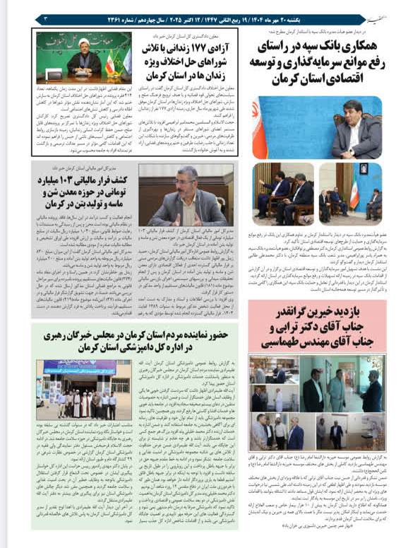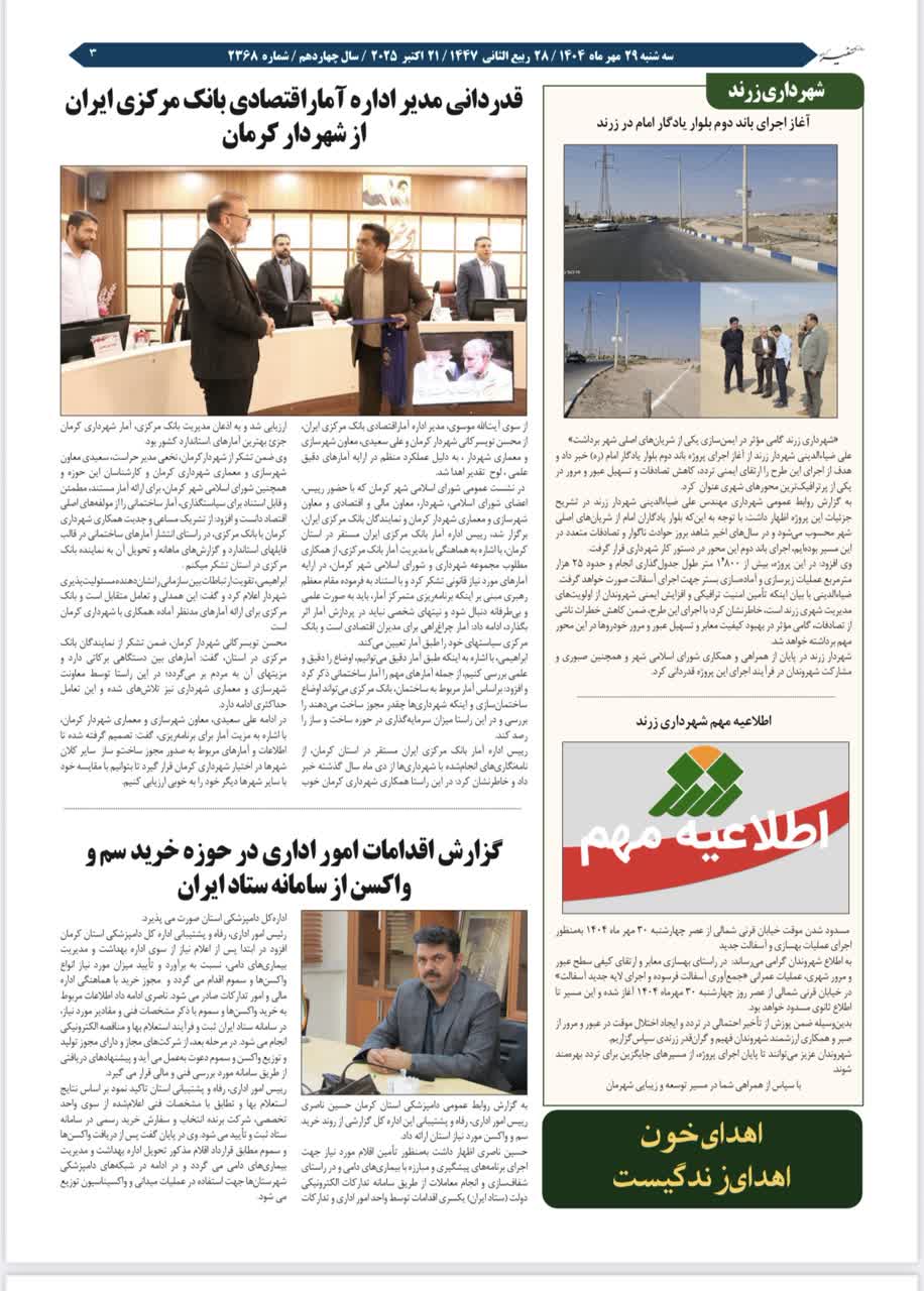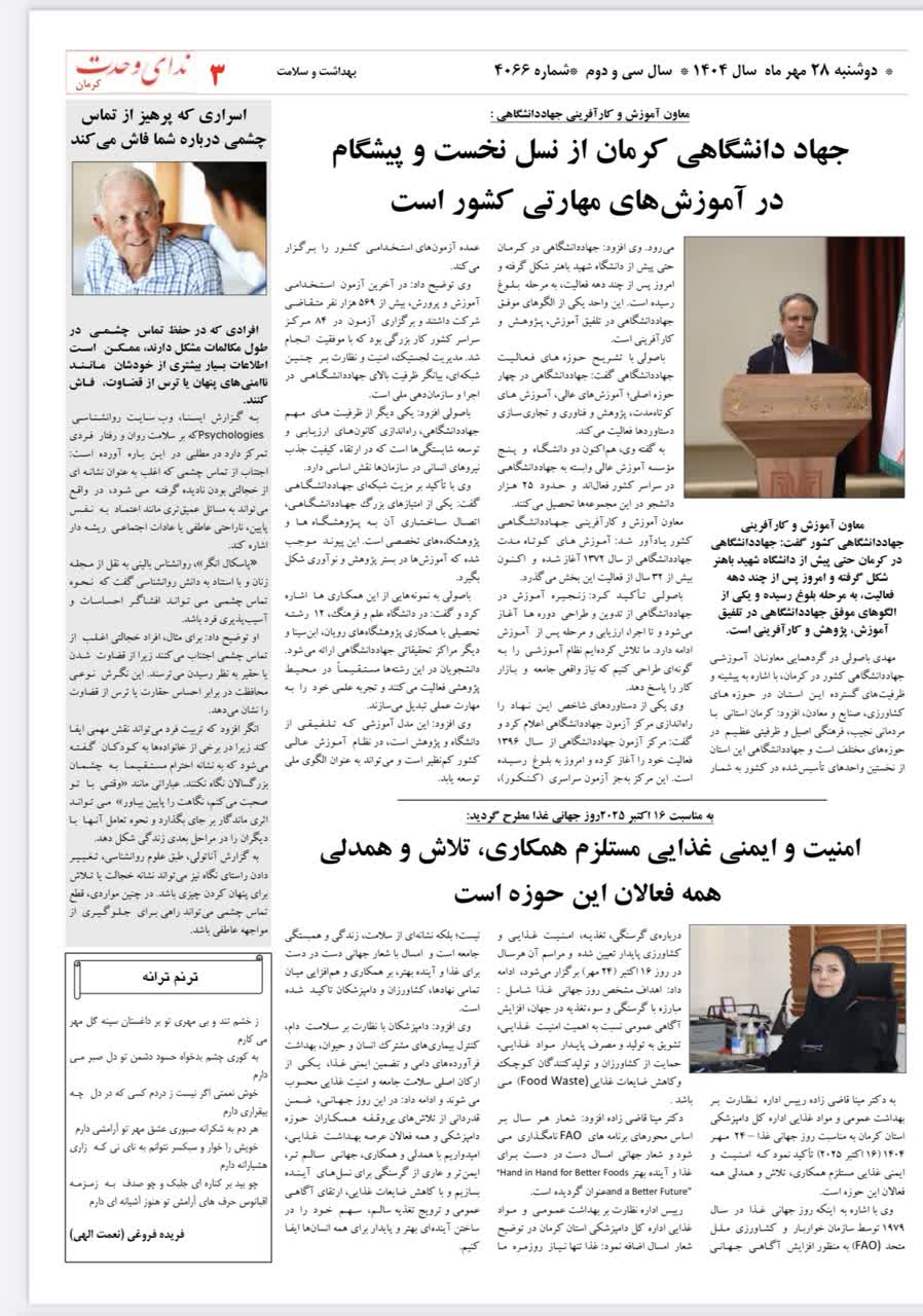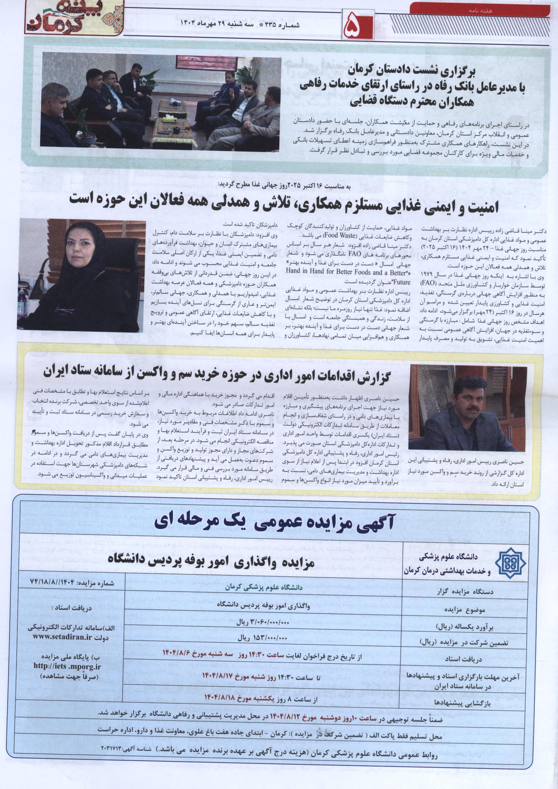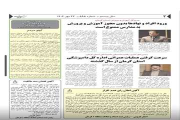 گزارش تصویری: انتشار اخبار اداره کل دامپزشکی استان کرمان در روزنامه ها - مهر ماه 1404 1404/08/04 - 10:38 - تعداد بازدید: 40 - کد خبر : 347119 - گروه خبری : عکس - تعداد نظرات : 0